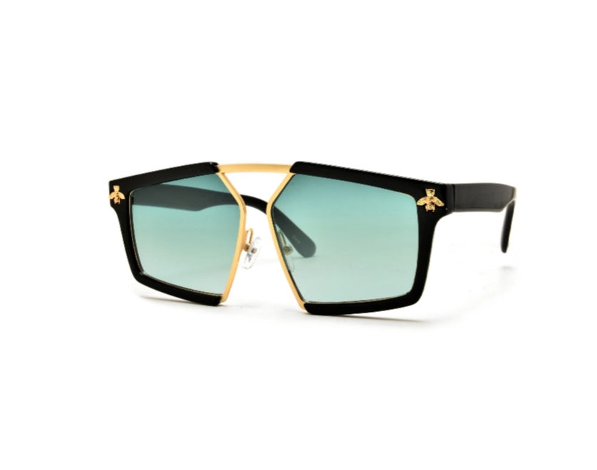 Black & Gold Bee Framed Aviator with aqua lens Sunglasses
