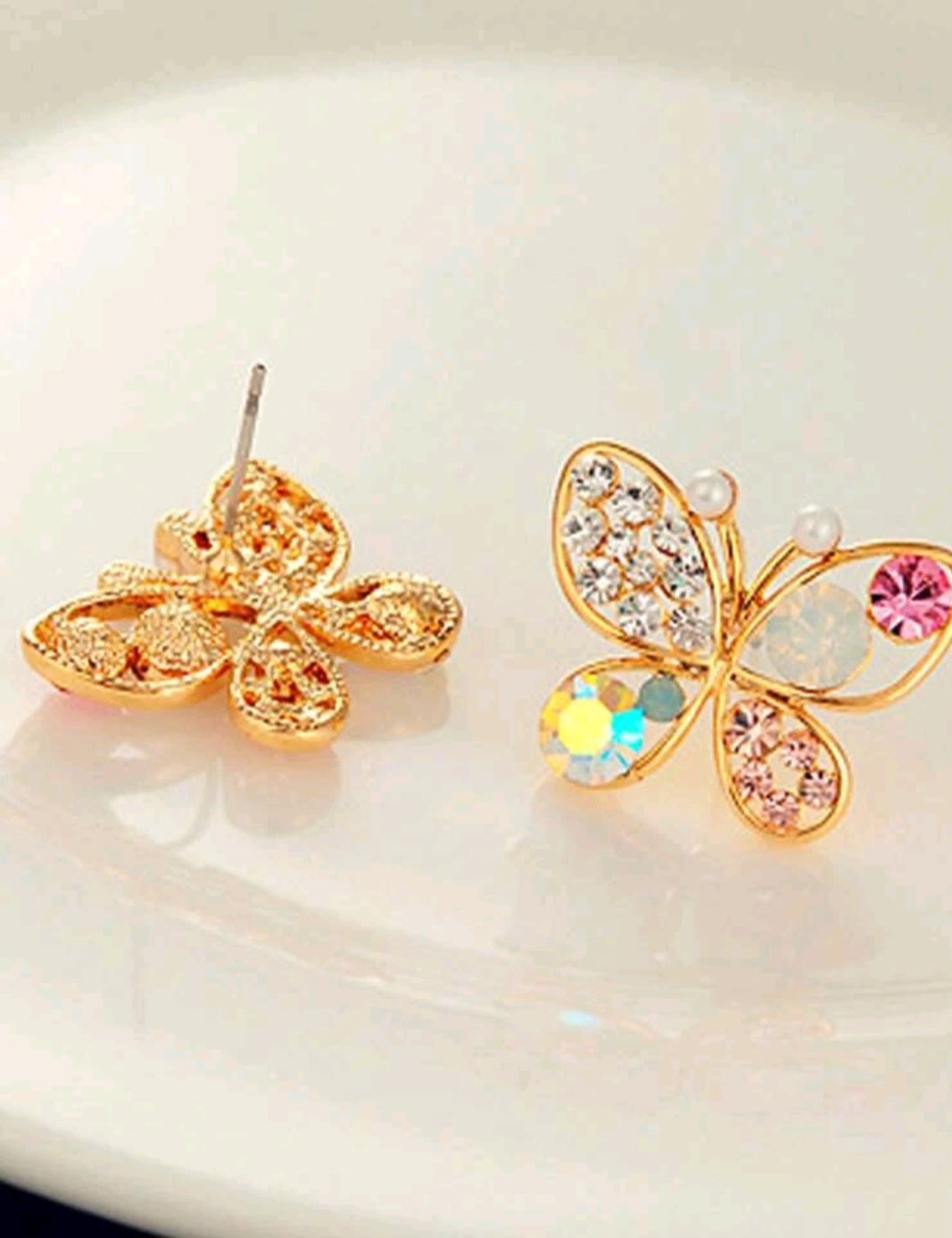 Introducing our Colorful Gold Rhinestone Butterfly Studded Earrings – where whimsical elegance meets dazzling charm in a captivating display of style! These earrings feature delicate butterfly motifs adorned with an array of vibrant rhinestones, creating a kaleidoscope of color that sparkles with every movement. The radiant gold setting adds a touch of sophistication, ensuring these earrings are both eye-catching and timeless. Made with Alloy. Whether you're attending a garden party or adding a pop of color to your everyday look, these earrings are sure to elevate your style and capture hearts wherever you go. Embrace the beauty of nature and let your spirit soar with our Colorful Gold Rhinestone Butterfly Studded Earrings – because true elegance knows no bounds! 🦋✨