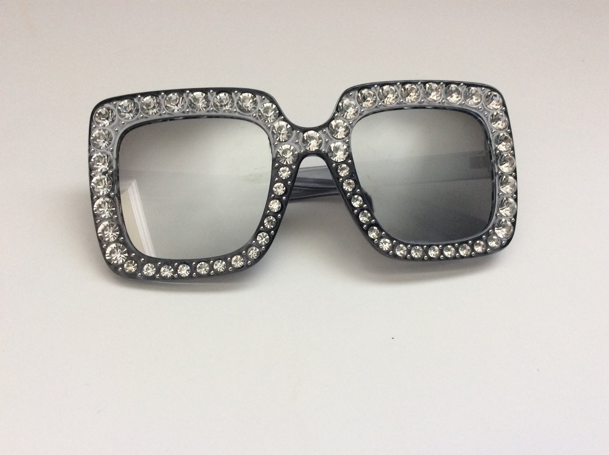 Round shaped blinged out shades with Black frames & Silver Rhinestones